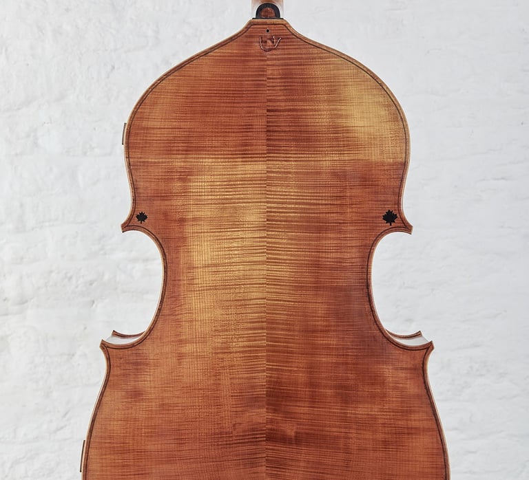 I am very fortunate to play on two wonderful instruments with matching bows. My primary instrument is was made by William Gilkes of Westminster, London in 1853. It was offered to me in 2021 by a former colleague from the Calgary Philharmonic, who purchased it from his renowned teacher, Stuart Knussen, former principal bass of the London Symphony Orchestra. It can be seen being played by Stuart Knussen in the documentary LSO: The Music Men . The bass was masterfully restored by British luthier Martin Penning, who is the maker of my other instrument, a wonderful modern instrument modeled after a famous Dominico Montagnana double bass.